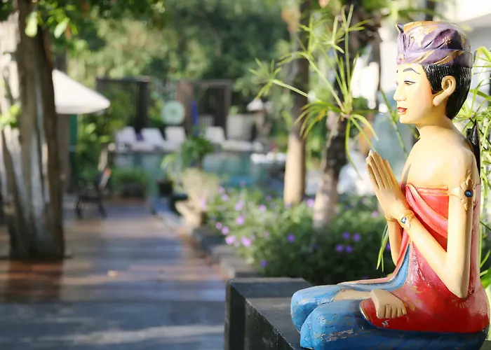 Een hotel is gelegen in de wijk Sunset Road op wandelafstand van 13 minuten van winkelcentrum Seminyak Square. Het centrum van Seminyak is te voet binnen 10 minuten te bereiken.