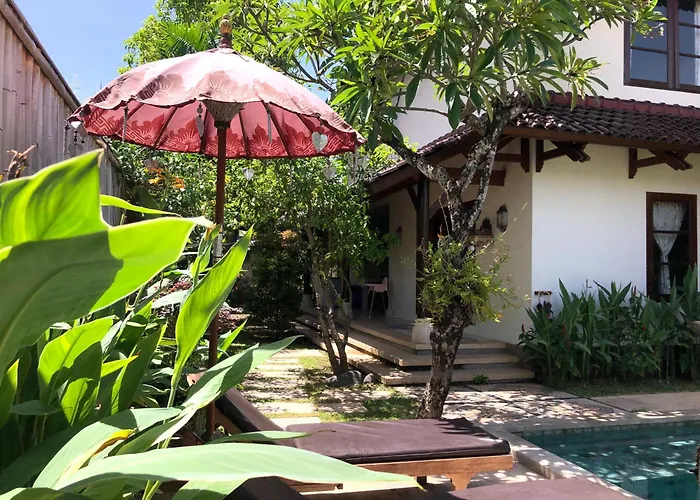Vanaf deze gelegen in Petitenget wijk villa is Poppies Lane 2 4 km. De kamers met zwembadzichten zijn voorzien van koffie- en theefaciliteiten, een koelkast, keukengerei, tevens is er toegang tot een zonneterras.